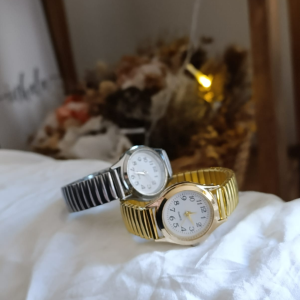 Clásicos y atemporales. El reloj Vintage con base dorada y plateada - la malla es elastizada, cuadrante de 2,5CM